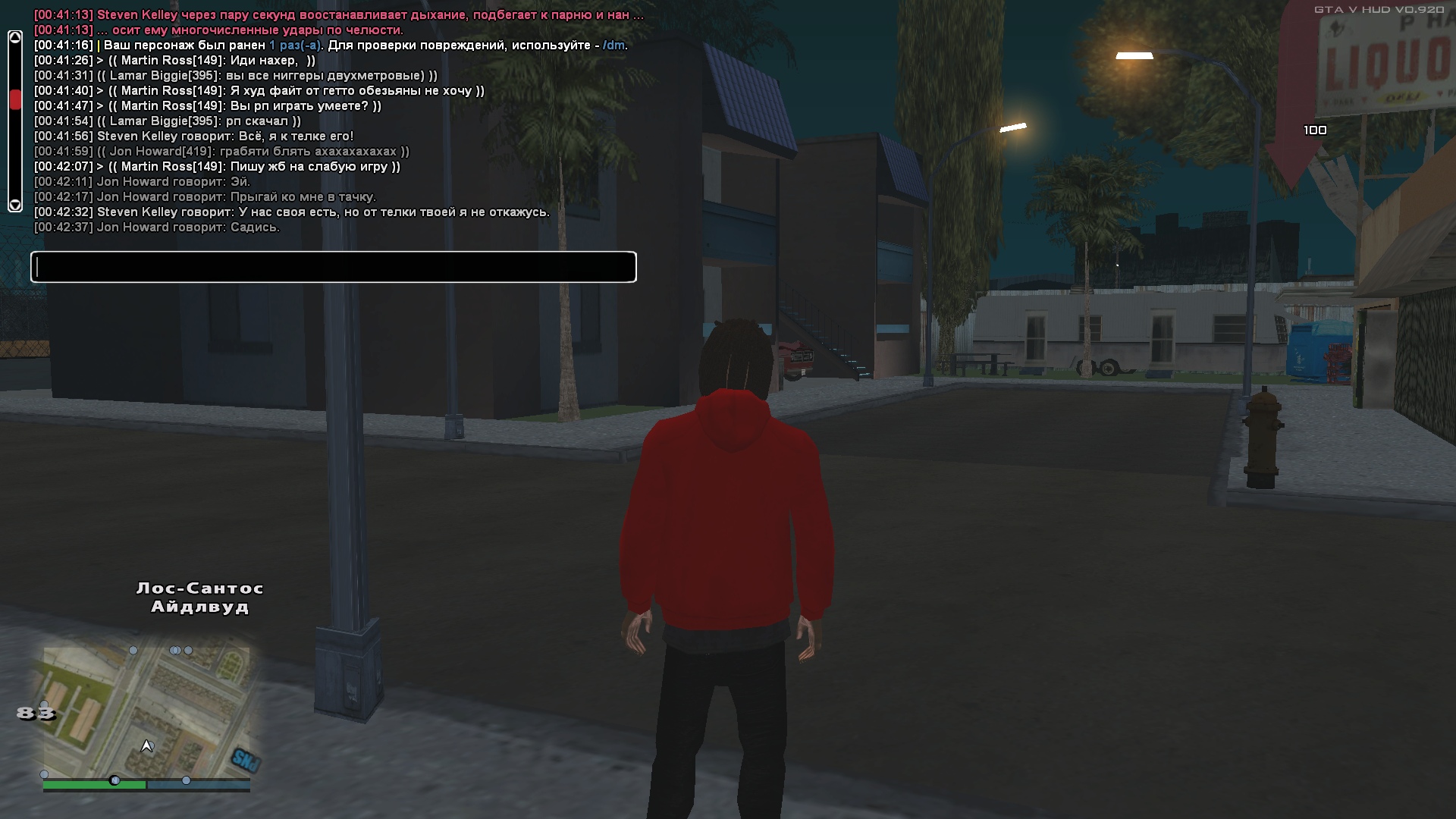 Jon_Howard - блокировка чата на 30 минут за использовании ООС на ситуации.