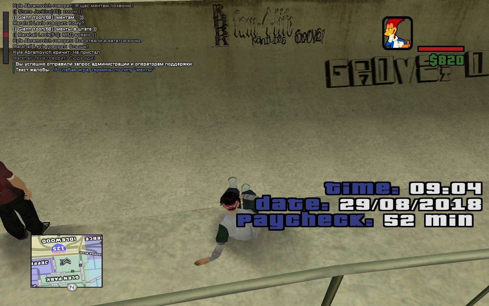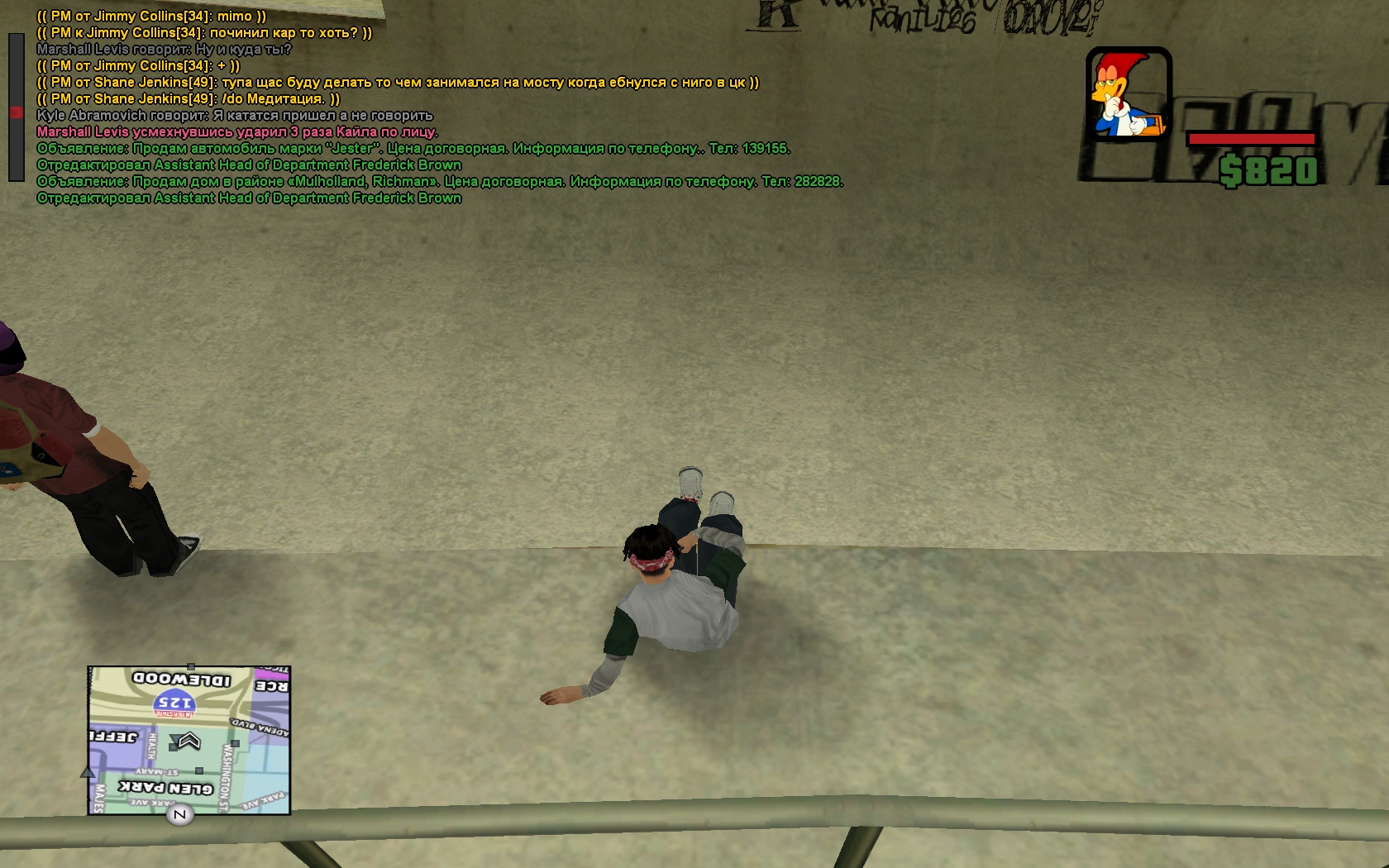 3. Суть жалобы: Парень наехал на нарушителя, тот по началу просто бегал вокруг него, попутно отпуская из своих уст реплики по типу "Бей меня, я же слабый!", "Я щас ментов вызову", потом его избили, тот сначала просто написал в чат /s АААААА!, а потом, когда парень, которые его ударил уехал, просто встал без отыгровок и продолжил кататься. Ах да, забыл. Когда он встал после избиения, он подъехал ко мне и спросил "Че палишь?". Шутки шутками, но это трэш.