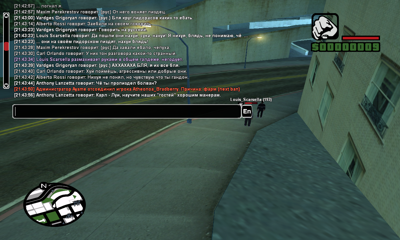 Расскажу про саму ситу. Пришли русские на худ нашей фракции одобренной, начали нести что-то на русском, мы естественно не понимали и начали играть это. В итоге дошло до оскорблений и переводов по гугл переводчику (всё обыграно было) и мы побили одного из них. После чего Грегорий достаёт ствол и ложится в стадию. И внепланово приехали копы с которыми помогли соигроки оперативно перестреляться. И поехал за нами по оос инфе один коп когда мы уже за угол забегали в сторону парковки и преследовал нас сиренами, что является от него игрой по оос и у нас действовала экстренная ситуация от чего пришлось его замочить