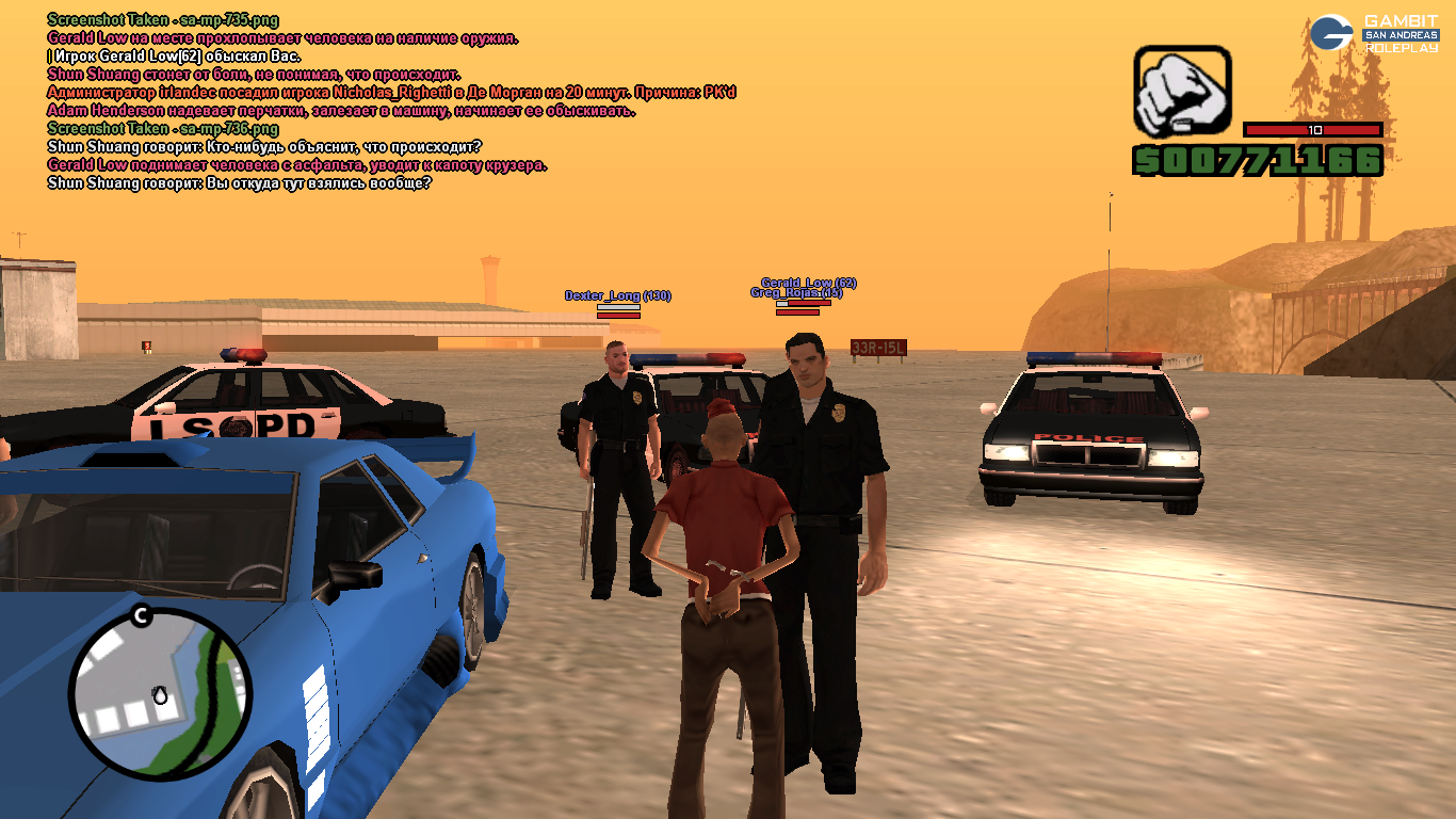 Прошу разобраться, а меня вытащить из КПЗ. Gerald_Low отказался предоставлять видео погони в VK, поэтому пусть кидает сюда в жалобу. И вообще запретите им системно садить игроков без позволения администрации, т.к. игроки ПД злоупотребляют этой командой.