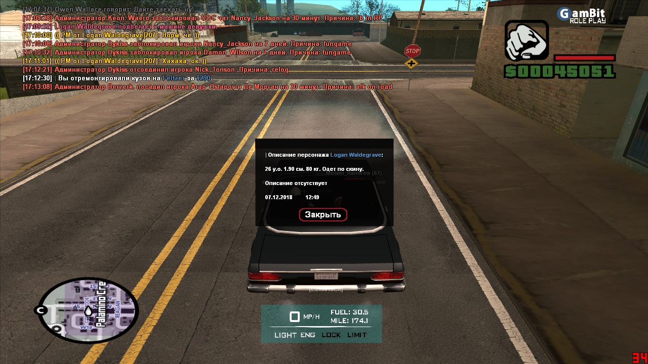 3. Суть жалобы: У Ливерпуля была выполнена остановка по стоп линии. В автомобиль моего персонажа въехал премьер. Играть столкновение на приличной скорости он не стал, а просто что-то крикнул и уехал. После чего, обиженный за имущество персонаж, отправился в слежку/погоню за этим седаном. Тот, в свою очередь, въехал в стену, неадекватно ездил по тротуару, также въехал в забор из растений. Ну и в кульминации этих событий, на скорости выпал пассажир. Не долго думая, тот вернулся в автомобиль, идя к нему в припрыжку (BH в народе). Вот так как-то. Так же, в дополнение ко всему хочу добавить описание ниже приложенного скриншота, с божественной отыгровкой пассажира. "/me подошёл к автомобилю девушки". Не плохо. На скудную игру скриншот потянет?
