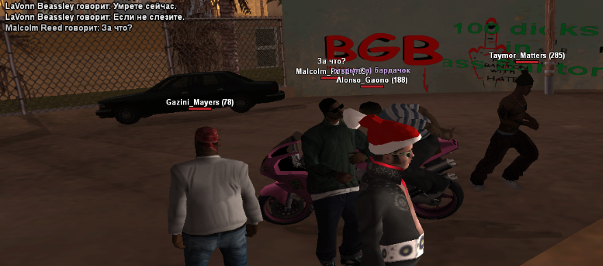 Суть жалобы: LaVonn_Beassley играл на гэнтоне нон-рп игру, после чего мы начали по РП трогать его байк, он позвал ещё одного игрока, ник его не видел и убили нас.