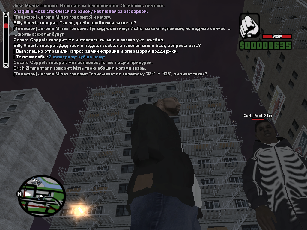Суть жалобы: Играли ситуацию с типами, данный персонаж ( Jerome_Mines ) в середине ситуации куда-то убежал, после игра продолжалась, потом он меня просто шотнул в спину, без /callw без отыгровок. Ну 2.3 в чистов виде + слабая игра мб.