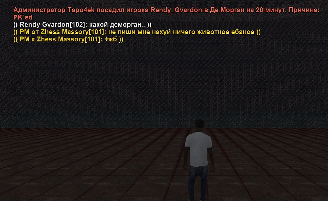 Суть жалобы: Стою общаюсь с игроком, к нам подходит чел, и спрашивает "за бд шаришь?", мой ответ был что бд херня, в итоге чел кидает без отыгровки меня в стадию, лежу жду окончания стадии чтобы встать, и тут подходит выше упомянутый игрок и стреляет по мне кидая в мертвую стадию, его причина была из роду типо "за плохое поведение на районе". После я спрашиваю зачем он это сделал, и получаю этот ответ: