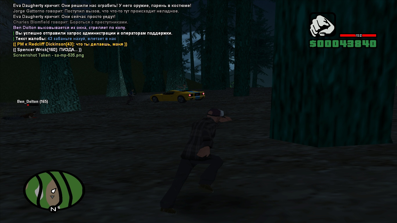 Суть жалобы: Поздним вечером стояли грабили двух ребят на окраине города, из-за затягивания ситы со стороны жертв и из-за вызова 911 с их же стороны, приехали копы, а эти ребята на которых сама жалоба - тусовались рядом, мы с моими соигроками начали сваливать, за нами началась погоня, пока я отстреливал по полиции, эти два крутых ролевика на своем буллете подрезали нас, а после, когда погоня с машин превратилась в пешую, и вовсе подлетели на своем булете и расстреляли меня, учитывая что в 50 метрах от меня коп и за нами погоня, полнейшее несоотвествие роли. Я сомневаюсь что люди, владеющие такой машиной, участвовали бы в такой хуйне, при том что ситуация их от начала и до конца не касалась, так же уверен что в квентах это очень добрые людишки.