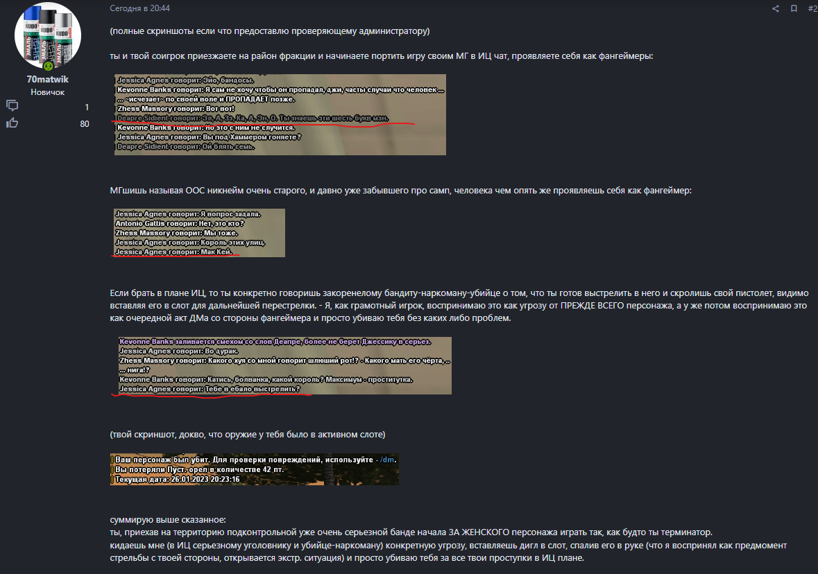 Суть жалобы: убил меня без отыгровки, ситуация экстренной не являлась абсолютно