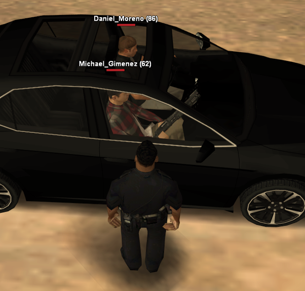 В итоге началась погоня. Игрока полиции не устроило что у меня дробовик в слоте, но отыгрывался он как между сиденьем и дверью. По правилам сервера я не могу хранить его в инвентаре из-за его габаритов и поэтому меня могли наказать.