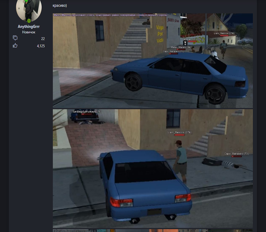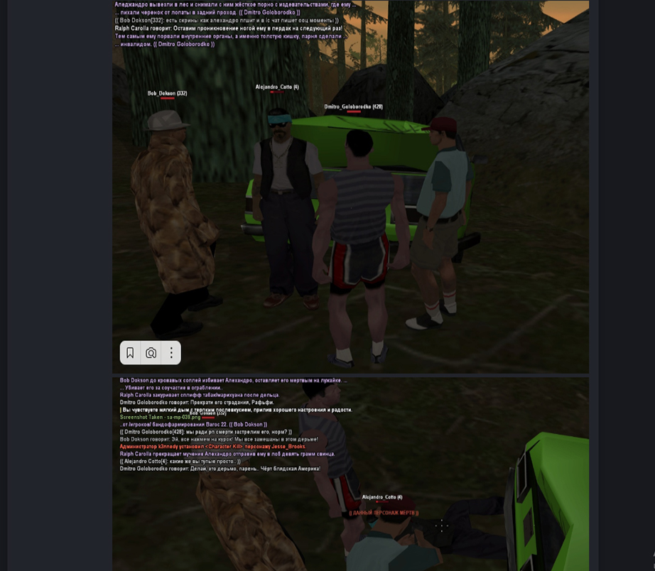 После чего я решаю зайти в игру и вижу как два игрока под никами Bob_Dokson и Dmitro_Goloborodko грабят меня. Они меня грабят после убийства. Алехандро Котто это игрок района Лас Колинас, они же вернулись на этот район и грабанули меня. Что видно на фрапсе - >
