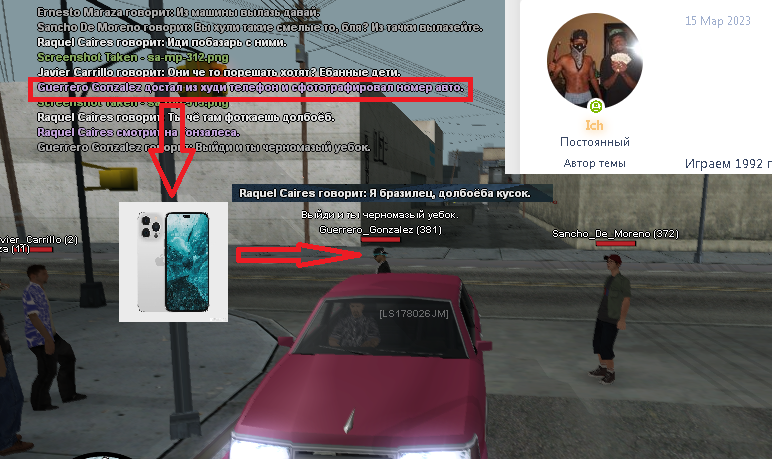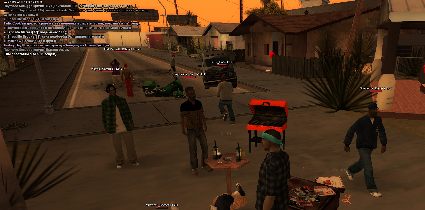 вы подьезжаете на красной машине в которой сидит один чернокожий. И шепчетесь в ней. Недавно у нас были проблемы с бладсами, конечно мы уже к вам агрессивно настроены