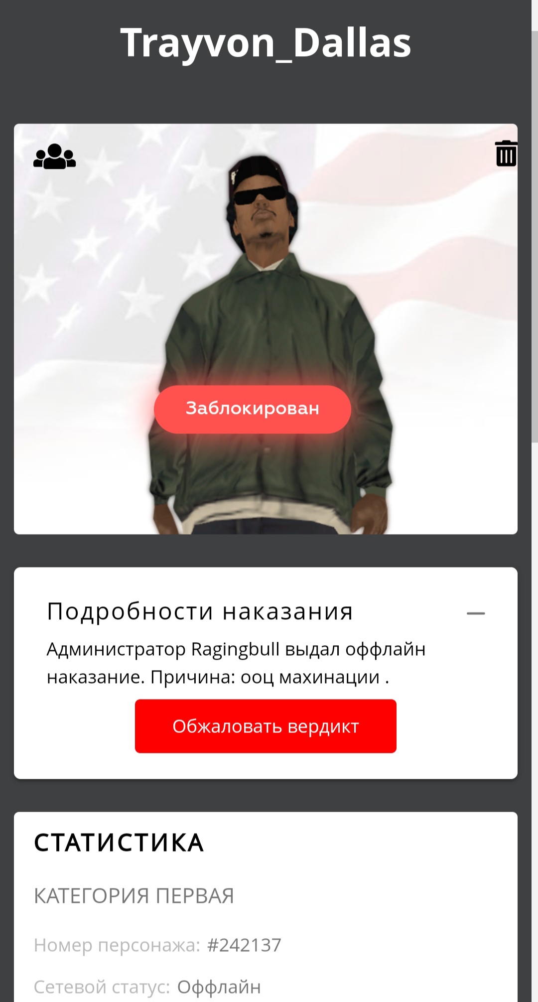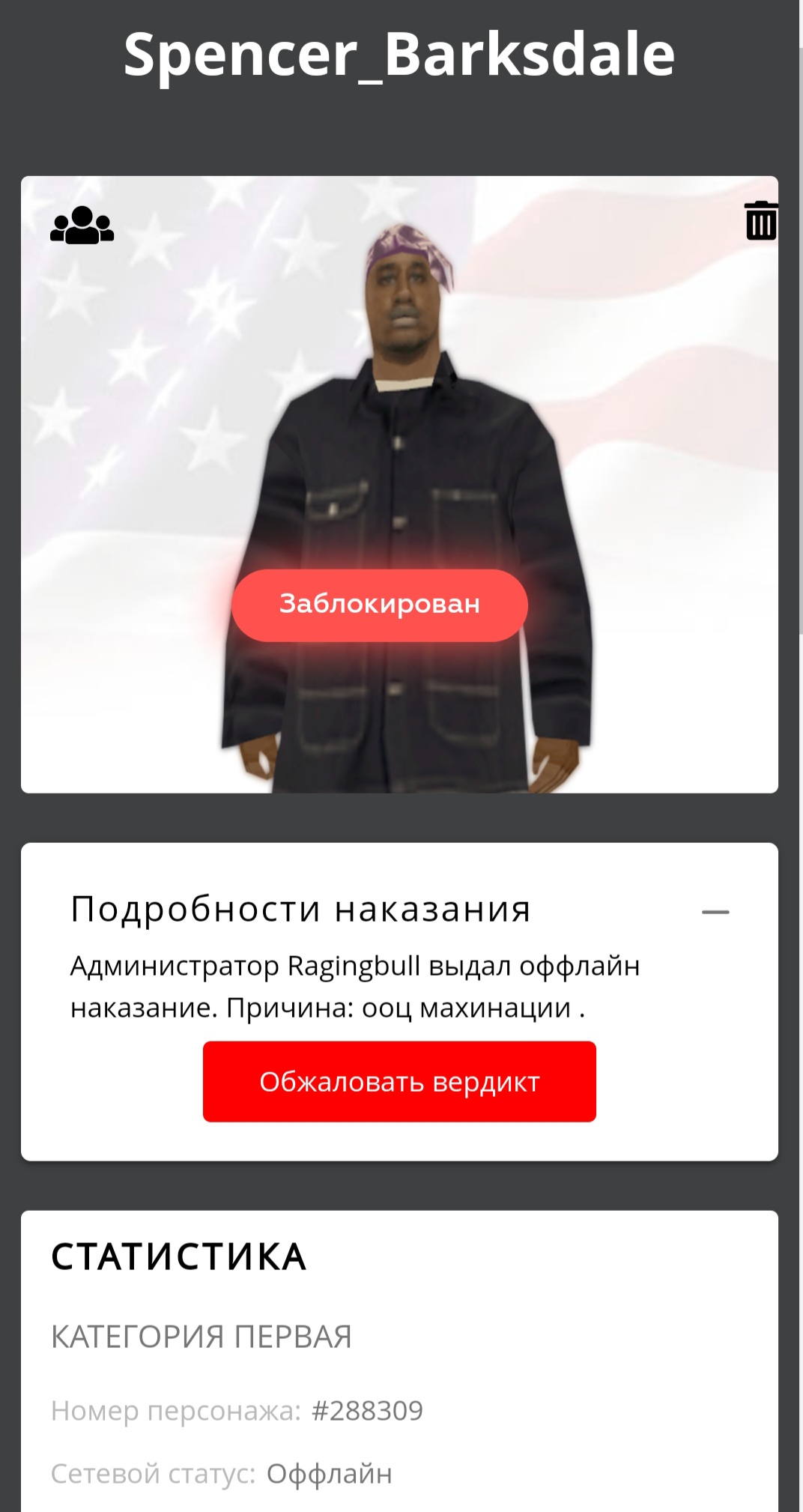 Дату наказания не помню. Но суть в чём.. Я с одного персонажа, путём сбрасывания вещи на землю, перекинул на другого персонажа ган, что конечно же является нарушением, но тогда почему-то я не думал о последствиях. Я согласен с наказанием, и признаю что грубо и довольно глупо нарушил правила сервера. Игрок я довольно-таки честный. Если в целом взять то у меня если и были какие-то наказания за нарушения, то совсем не значительные, и то их потом снимали, большинство даже по ошибке выдавали. Может конечно пару последних наказаний были странными, но мой акк был взломан, и мы с тех админом восстанавливали давненько ещё.
