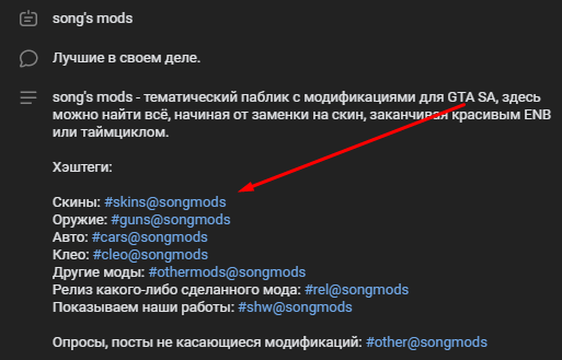 Смотрим на описание группы и видим хештеги с уточнением значения: