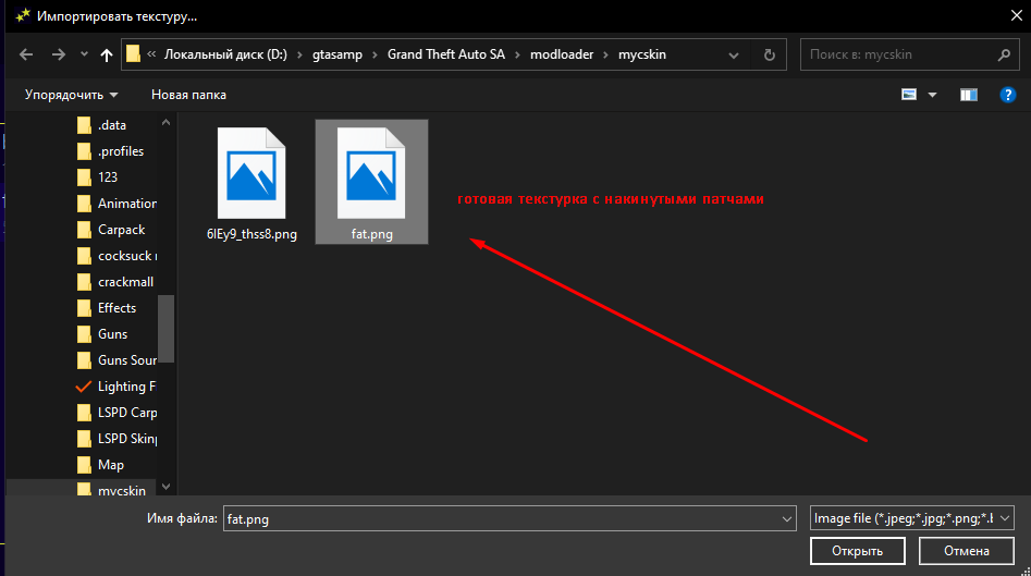 Далее закидываем текстуру с накинутыми патчами в TXD файл заменяя прошлую текстурку, обязательно с тем же названием.