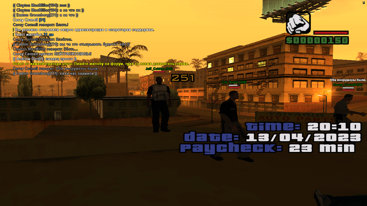 Суть жалобы: Стояли спокойно общались на своей игровой площадке. Прибегают два или три шерифа, начинают без отыгровок и весомых причин стрелять по нам. Никак с ними не взаимодействовали. После стрельбы, к слову, они убежали, также ничего вообще не обыгрывая. Возможно, пацанов взломали или они обиделись на свою фракцию и пошли дмить. По логам чекните, кто нас убил.