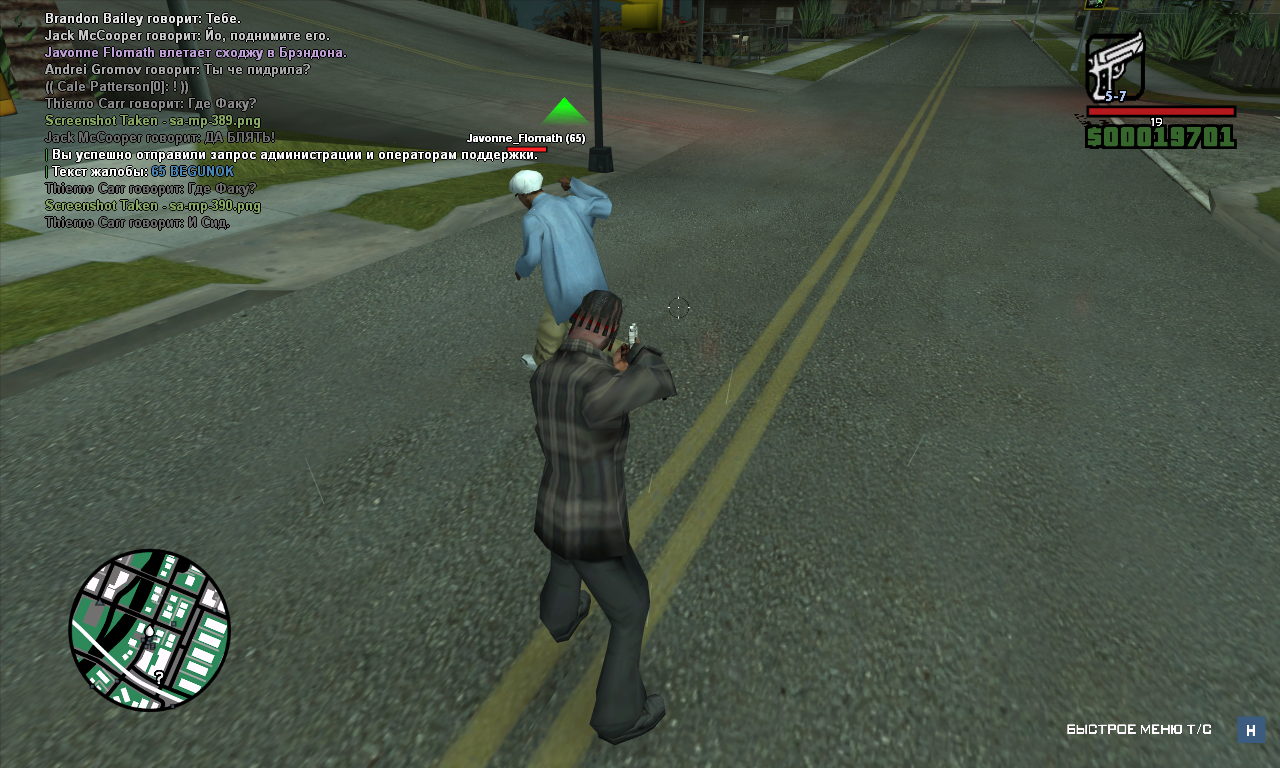 Суть жалобы: Бегунок во время драки. Игнорирует правило PG и продолжил меня избивать, несмотря на угрозу стволом.
