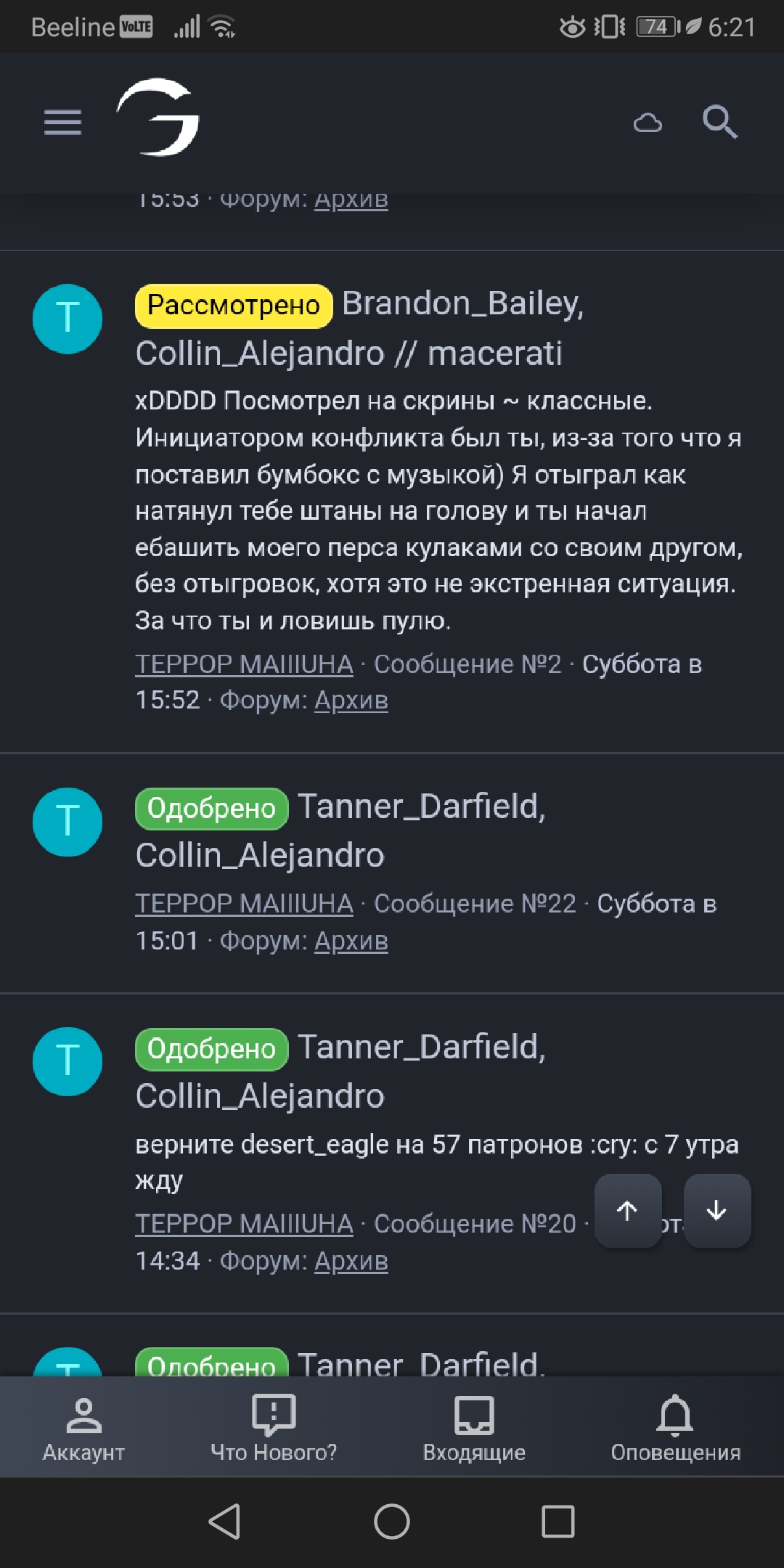 Ссылка на доказательства наказания/нарушения: https://yapx.ru/album/V86nI (cкрин от меня) https://yapx.ru/album/V86oL(скриншот от соигрока)
