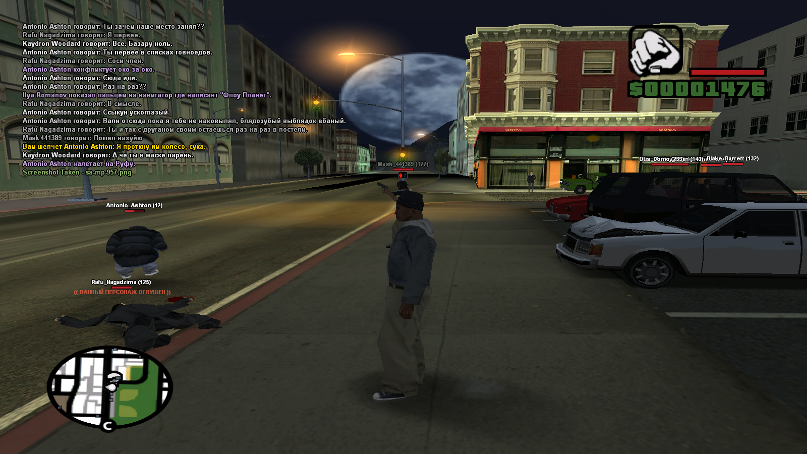 Суть жалобы: приезжаем играть, происходит конфликтная ситуация за парковочное место. Слово за слово, со стороны азиатов идет оскорбление, персонаж не стал это терпеть и завязал драку 1x1. Опрокинув в системный стан типочка его дружок понимает что тот не вывезет и без отыгровок (его никто не бил, не угрожал ему и тд) начинает расстреливать и аналогично второй поднимается с технической стадии оглушения и начинает сбивая присядом анимацию стрелять по нам испортив игру с соигроком и отправив в пк проёбывать полтора часика.