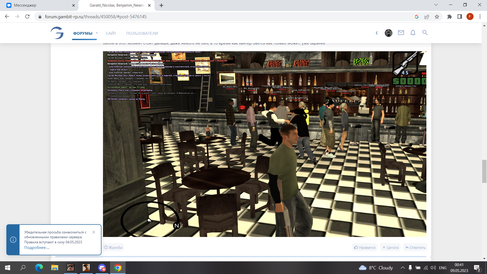 Суть жалобы: Пришли втроём на открытую ИС площадку паб "Euphoria", на вопрос почему они с оружием повели себя агрессивно, после вызова копов просто начали ДМ в ЗЗ с применением оружия, прошу навсегда ограничить данным людям доступ к проекту, это вредители, сорвали открытие ИС площадки. https://imgur.com/a/L0MC64g