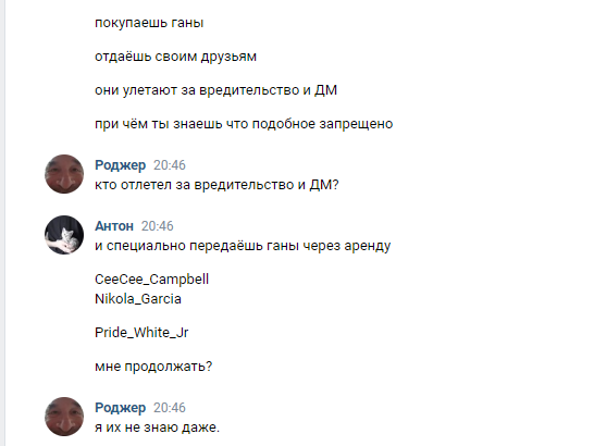 Суть жалобы: забанил лк за передачу ганов. ганы не передавал даже.