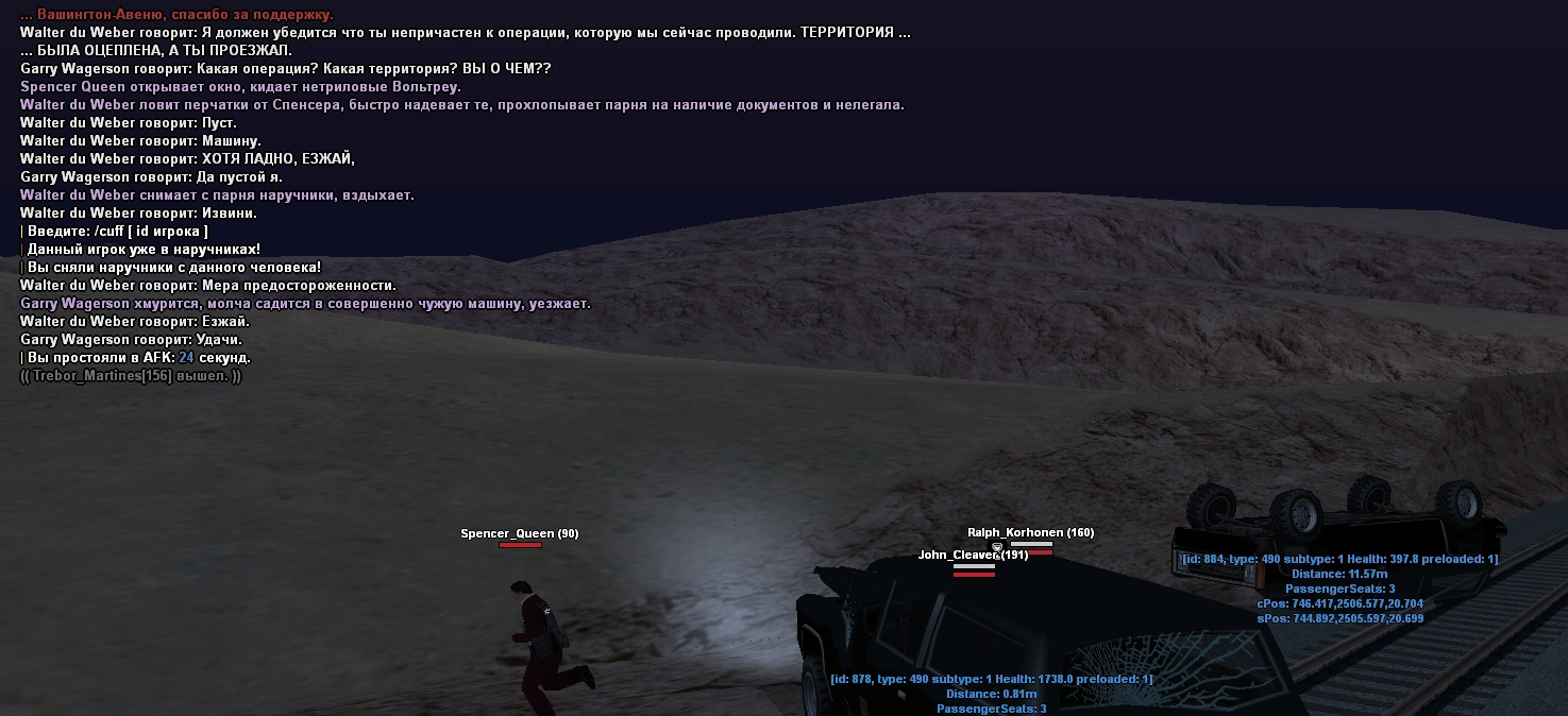 Фракцию ТС "Barrancas Republic" уже несколько раз пытались арестовать. Однако все разы, когда БСР подъезжали на локацию фракции, все игроки намеренно выходили из игры. Это только с БСР. Отдельно при игре с национальной гвардии два дня подряд Ваша фракция аналогично покидали игру, с целью ухода от ареста/взаимодействия/сохранения оружия.