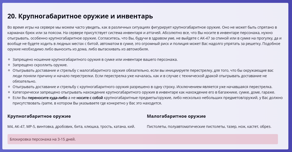 На фрапсе ситуации с убийством я мог заметить стрельбу от нескольких участников ситуации, а не только тех, кого я описал. Но здесь действовала экстренная ситуация, поэтому отсутствие отыгрыша оружия простительна. Однако, здесь же игрок Killian_Rollack_Sr не отыгрывает, откуда достал мелкогабаритное оружие в виде пистолета, просто скроллит его, что является нарушением пункта 20, а именно: