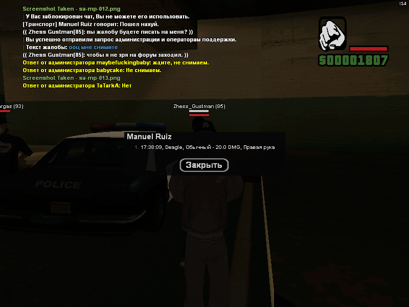 Я должен был это скринить? Это вы на меня подали жалобу, а не я на вас. Это видел администратор, видел коп и другие игроки. Ты на лестнице напал на копа с кулаками, за что и был застрелян.