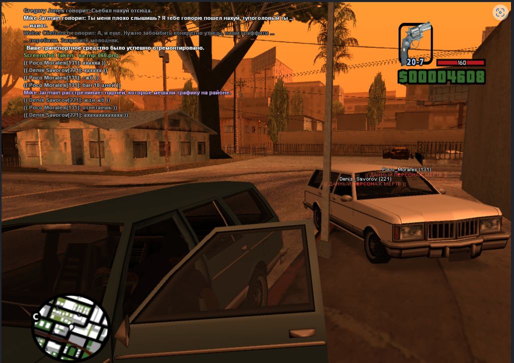 В этой ситуации Майк абсолютно не прав, да и доказательств его слов насчет ДБ не вижу. Поцарапать машину не причина для убийства, помеха траффику тоже фактически себе не причина. Вы больше мешаете траффику тем что УБИВАЕТЕ людей посреди улицы на своей машине недалеко от участка. Глупость, когда вы поймете что вы с легкостью можете пригрозить стволом или избить человека, попутно отстрелив ему пятку. Правила перечитывайте, товарищи!