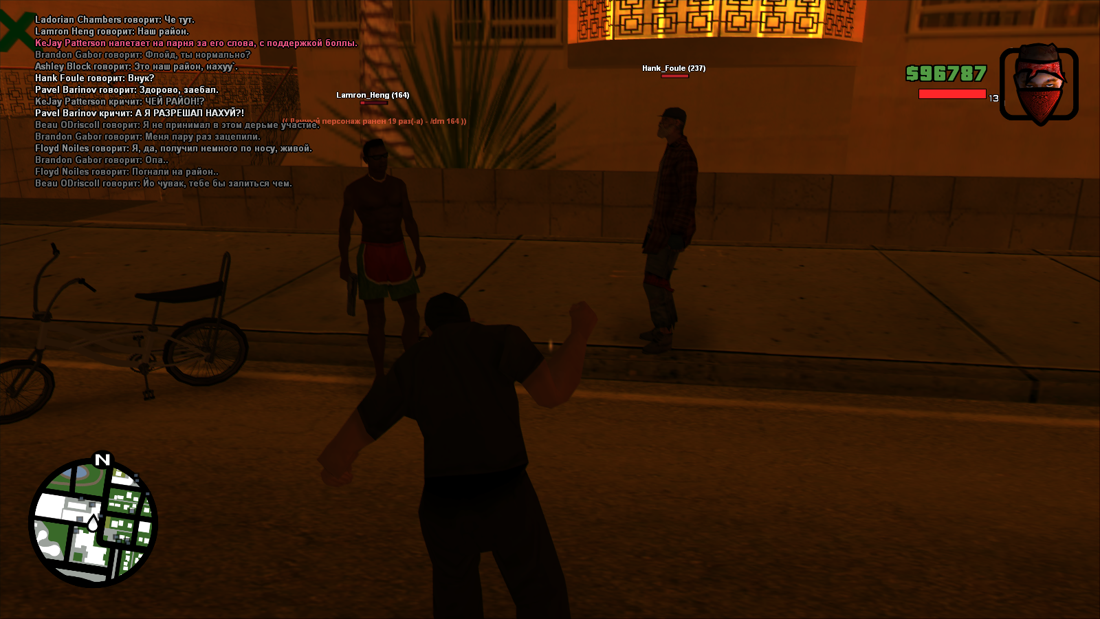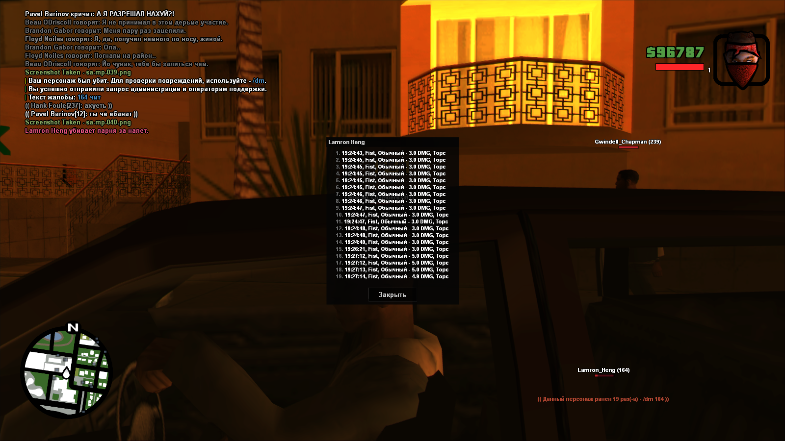 Я стою в стороне и наблюдаю за толпой, вижу как три левых типа начинают пиздить моего кента, он убегает от них, тут я вижу, как один из них отстаёт с малым кол-вом хп и я помогаю дохуярить его, в этот момент последних тычек, он начинает скроллить дигл и падает в стадию. Каким-то чудом он встаёт на ноги и кладёт меня из дигла, который скроллил. Также этот тип и его друзья орали БОЛЛА АП, есть предположение, что это фракция https://forum.gambit-rp.ru/threads/450482/page-24
