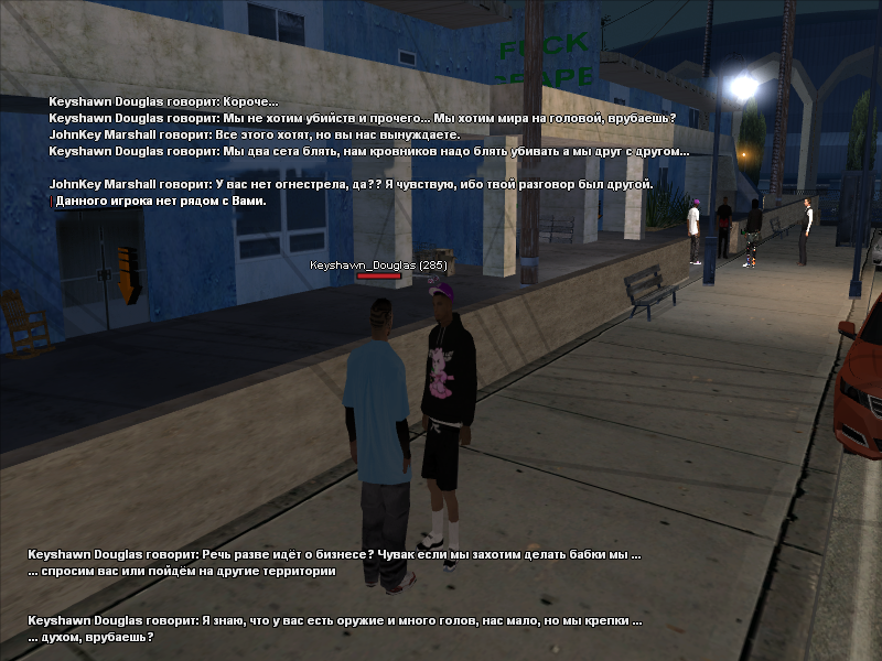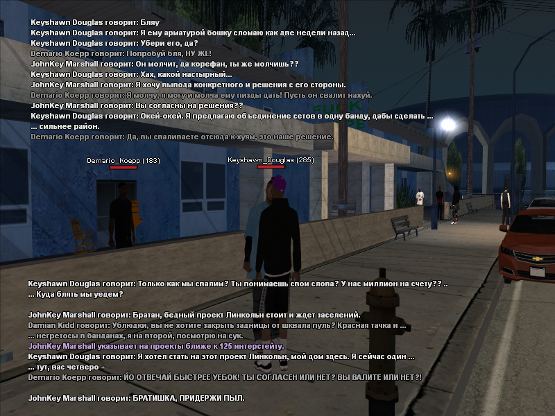 По сс увидел, что компания Билли и Алонзо пыталась урегулировать конфликт всеми возможными способами, что вторая сторона напрочь игнорировала под предлогом "мы тут дольше живем, ПЕРЕЕЗЖАЙТЕ". Причин на убийство не было, к тому же был задействован абсолютно левый игрок во время стрельбы =за помеху бизнесу=. У фракции не вижу будущего.