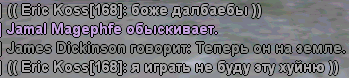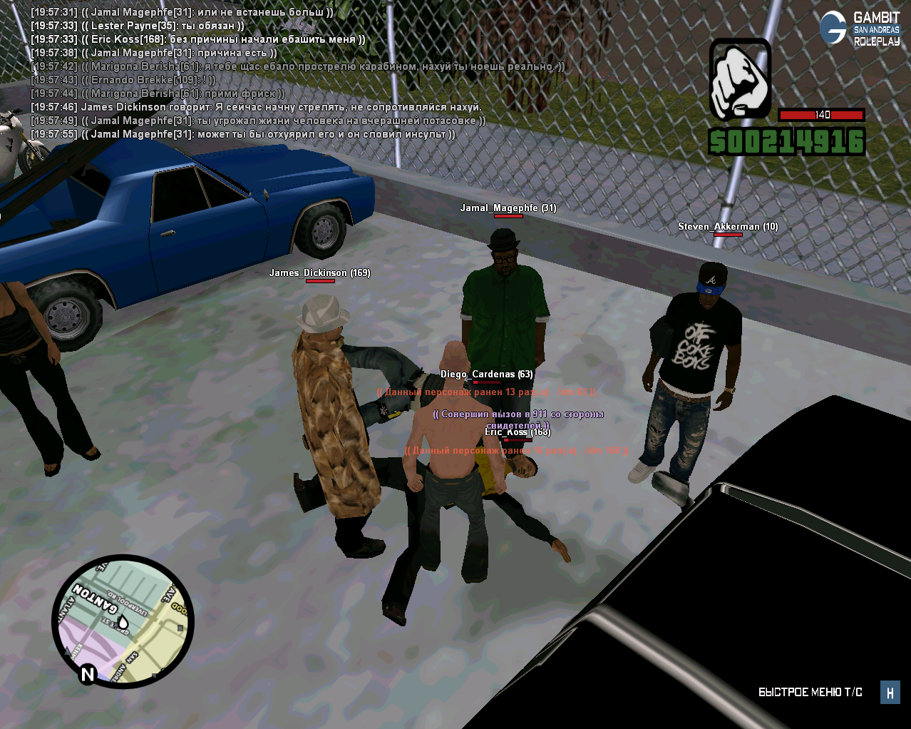 3. Суть жалобы: стоял НИКОГО не трогал, вчера темболее. Тут подходит черный, начинает втирать мне кто я такой по жизни, подбегает амеба по имени Лестер Пейн, вырубает, повторюсь, никого не трогал я. Я отказываюсь от обыска, темболее то когда тебя нокаутировали по "рп" причине, я не отказывался от самой игры, я отказывался от обыска, темболее то на 1 стадии, согласитесь что это бред. После того как я отказываюсь от фриска несколько раз, я все же принимаю его, НО, тут в меня выстреливает со своего дробовичка амеба упомянутая выше. И да, понять не трудно кто в меня выстрелил, ведь на скрине прекрасно видно кто стоит со своим дробовичком.