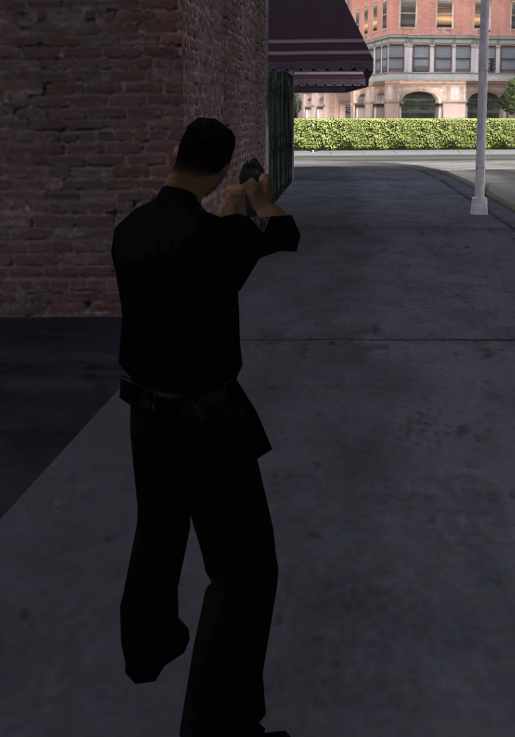 Касательно анимации, по которой можно было бы уличить смену дигла на мп5 - расстояние, опять же, слишком большое, чтобы можно было наверняка сказать, а рука в темной форме не так уж и выделяется на фоне столь же темной стены.