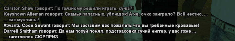качественный гейм? Вы начали резать нас при равной драке 5 на 5, а после ебанули проезд ахахаххаах, о чём ты говоришь парень? Я хотел делать реп войну и тегги, а не стрелять. Наш чел ск взял из за того, что вы его кокнули.