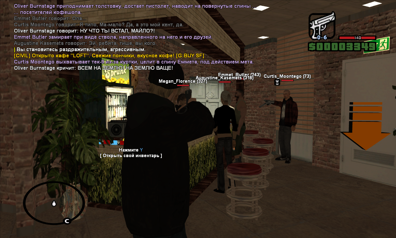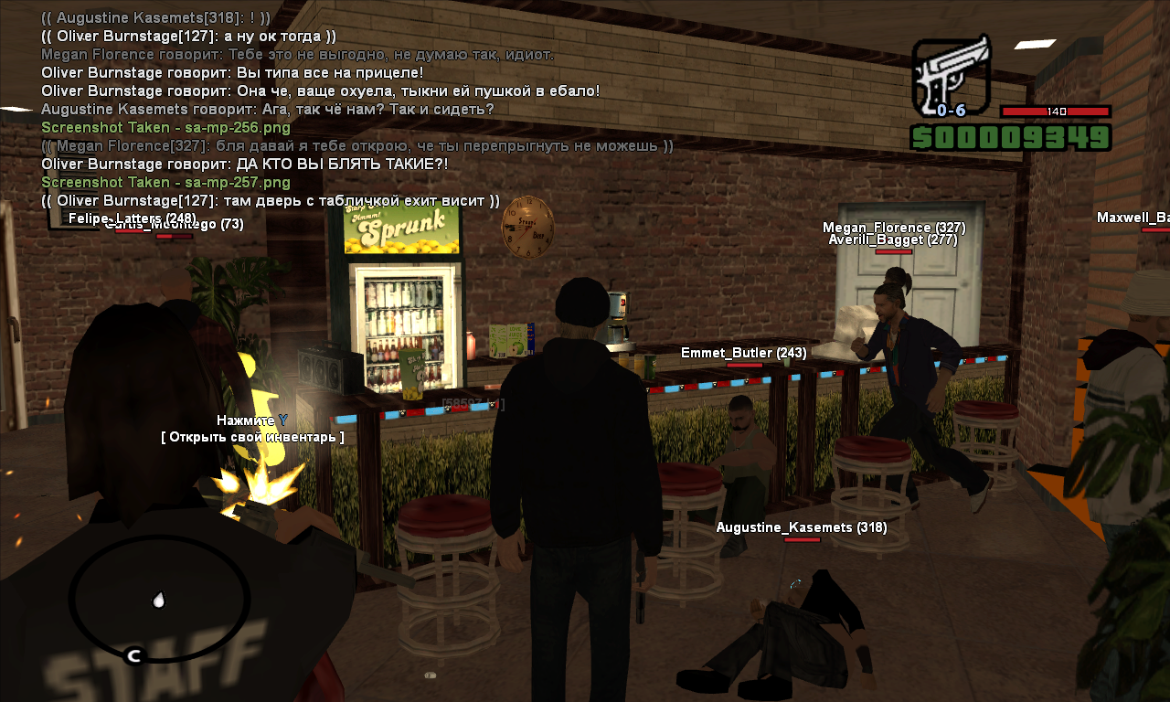 Парэн, мне не нужны скриншоты с ситуации или фрапс, то что вы залетели и пошотали - и так понятно. Я прошу скиншот-доказательство того, по какой причине вы приехали в бар и начали кричать в дверь "Эй, вы там?", "ЭТО ПОЛИЦИЯ ЛАС-ВЕНТУРАСА". Скриншот, где видно, что один из заложников в баре отправил вам сообщение, позвонил, что-то сделал в IC, по какой причине вы всей толпой, заряженные, зная что внутри ограбление, приехали в бар.