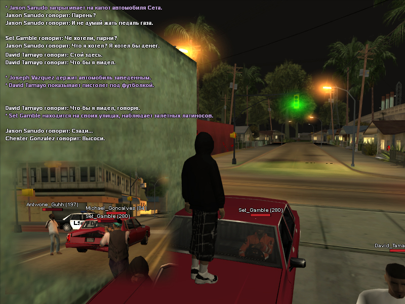 Короче, тянуть кота за хвост больше не буду. Эта несчастная жалоба висит почти две недели. Я понимаю, что неприятно, когда к тебе на худ заваливаются латиносы, которые прямо требуют у тебя денег. Это обидно, это похоже на фангейм. Однако стоит учитывать, что ваш худ не подписан, и вы должны защищать его сами. Уезжать на машине - это последнее, что делали бы бандюки на своем же худе. Я предполагаю, что необходимо было выйти и разобраться хотя бы в системном файте.