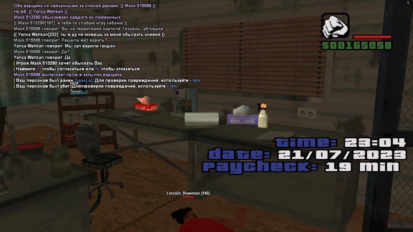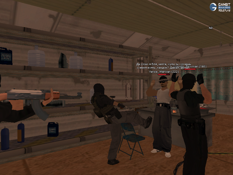 Я не вижу тут адекватной игры и нормального поведения, вас тыкают оружием вы оскаете, шутите про мамок. Че-то мельтешите. Одно ПГ с вашей стороны.