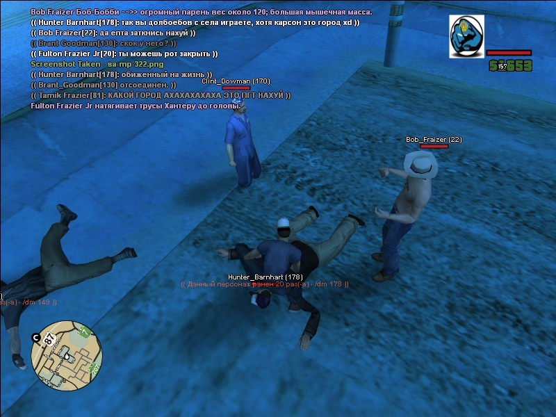 Суть жалобы: Как я понял играют селюков, упустим скриншоты где они мне в /b утверждают что Форт-Карсон это не город а посёлок, что мол делает их неадекватное поведение, а именно нападение толпой в 6-7 рыл на полицейских и проезжих, ограбления, стрельбой по колесам - в рамках "ок"