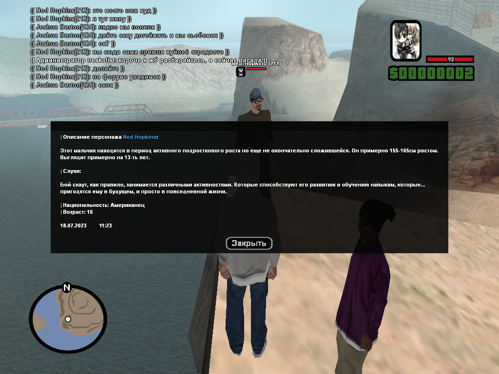 Суть жалобы: Мы с моим товарищем спокойно геймили ic ситуация и делали сс. Вдруг к нам прибегают два человека Ned_Hopkins и Chelsea_Cusack и пишут: Что тут? ПРИВЕТ! и так далее