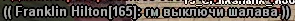 Суть жалобы: За мной бежит какая-то толпа , докопалась из-за того что мой персонаж нигер , за мной бегут человек 10 я убегаю , мне грозит угроза жизни , я достаю ствол и в меня сразу стреляют , и сразу же меня откидывают. Админ дай мне опру где я не должным образом сделал что то. Я тоже самое лять и в жизни сделал бы короч дай опру