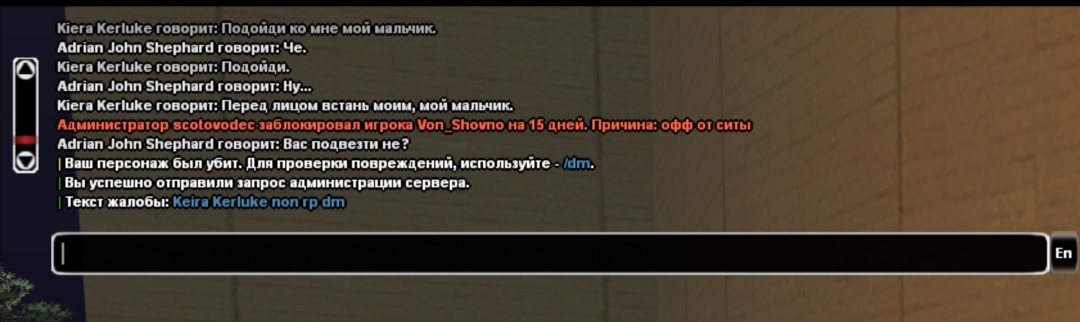 Суть жалобы: Я общался с девушкой по ис около своего премьера и случайно открыл инвент, челик с этим ником забрал по оос у меня AK-47 и обрез, а дальше без отыгровок застрелил. Надеюсь, что вы сможете наказать данного игрока за нон рп взятие оружия, а также дм. А может быть даже и вернете мне это оружие, это ужас