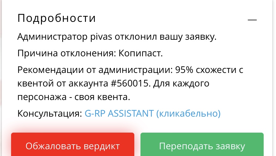 Глянул твоё юцп. @pivas, он скопировал квенту с удаленного персонажа, так что пусть переподаст заявку.