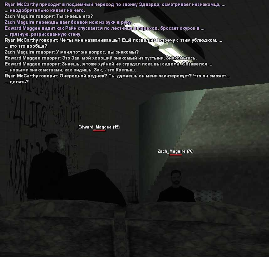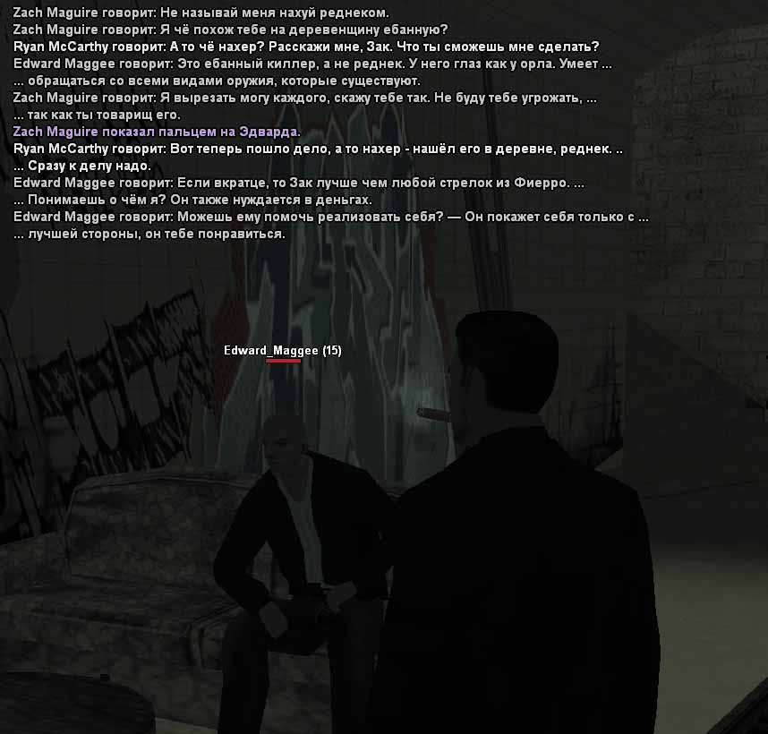Щас отвечу за парня, играем в одной фракции (https://forum.gambit-rp.ru/threads/461599/). У нас была встреча с итальяшками который с нами на одной улице играет - в итоге все переросло в массовой шот, на которой приехали копы. Персонаж которого забанили сидел на крыше с карабином и прикрывал, а потом поехал выступать как боевая сила по городу. Все скрины есть в топике