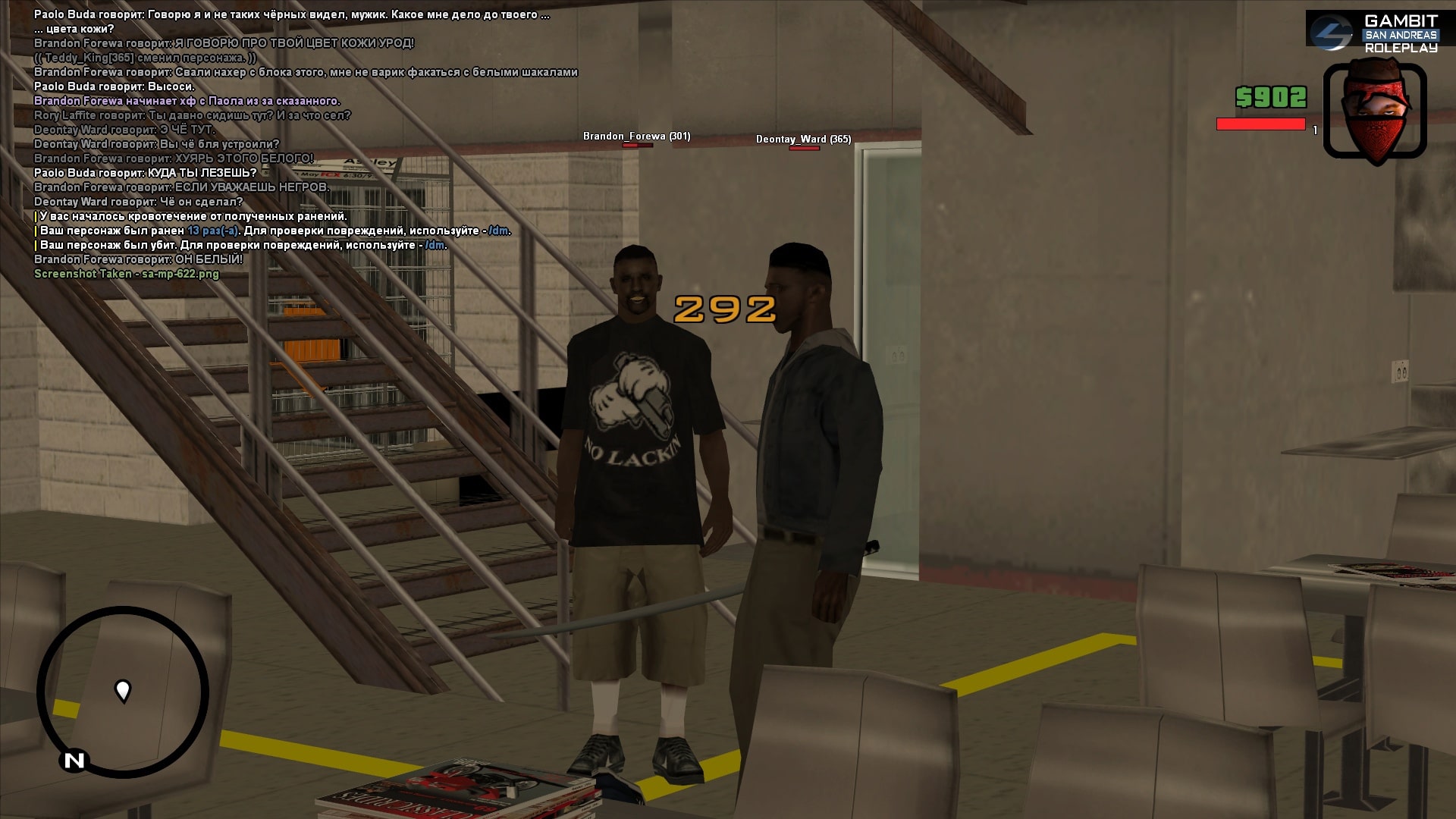 Суть жалобы: зашёл поиграть в садке, в ходе чего произошла ситуация, Брэндон пристал до моего цвета кожи, после чего начала конфликт, за ним драка, после появляется Вард, Брэндон ему кричит если уважаешь чёрных избей белого, он достаёт хуй пойми катану играет её как мачете и режет меня.