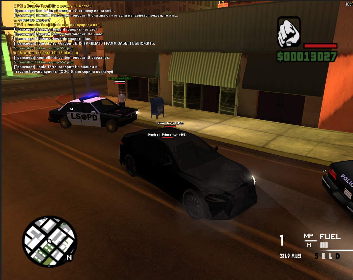 ты от меня убегал яростно, без единой отыгрывки сел в первую попавшуюся машину и поехал в сторону помощника - было применено оружие, которое было в активном слоте — учитывая, что ранее была информация от инициаторов преследования, что вы вооружены - это единственное, что оставалось моему персонажу.