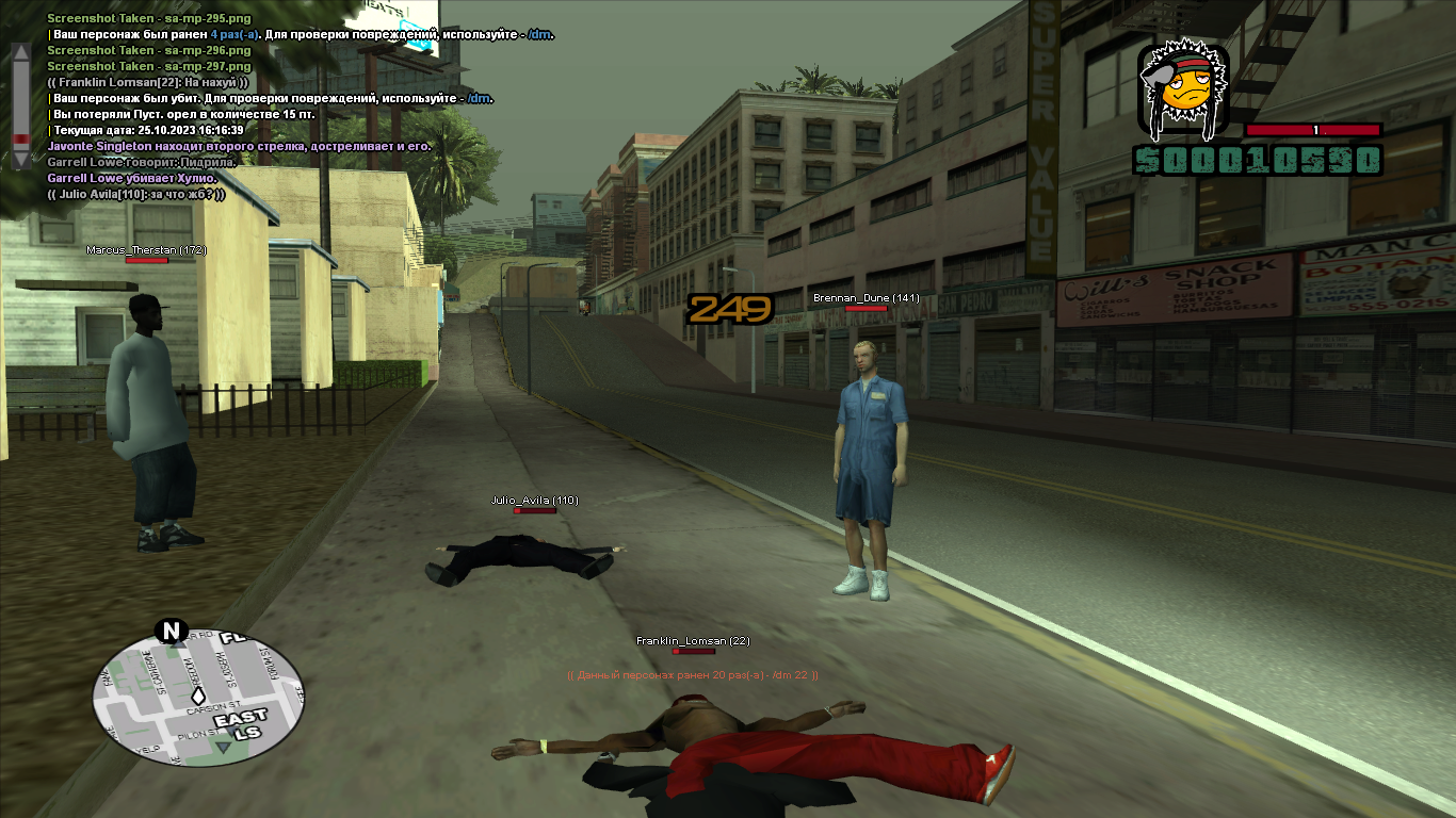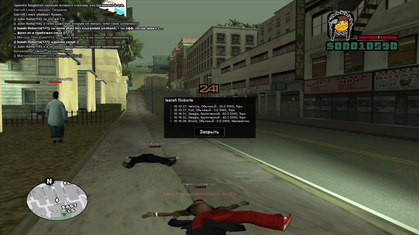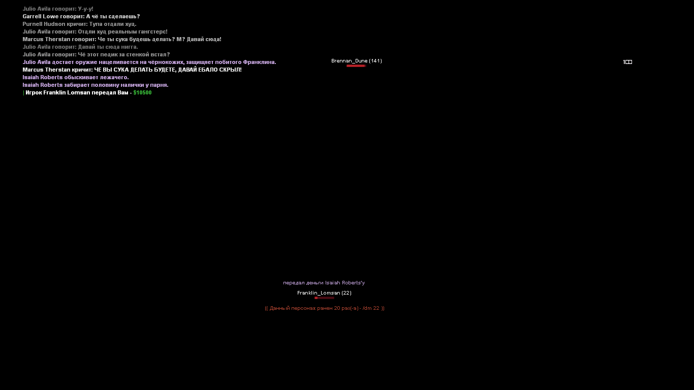 Суть жалобы: Скрины приложу ниже. Вообщем играли, то что избили пацана, приезжают 2 дурачка и начинают выебываться на нас. Мы максимально не хотели идти с ними на контакт, но вскоре после словесной перепалки они достали ганы и начали целить в нас. Мы побежали. Как эти долбаебы уехали, я пошел отыгрывать, что обыскиваю избитого и тут один из них подлетает и кидает меня в стадию.