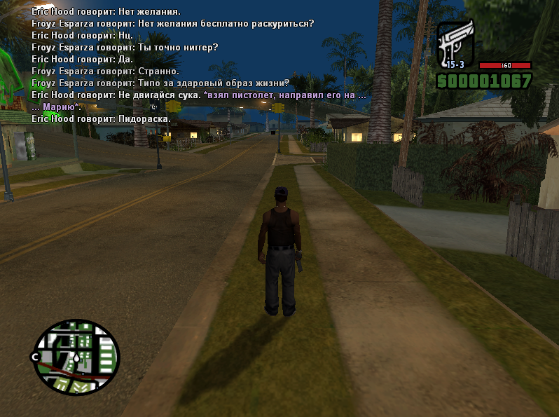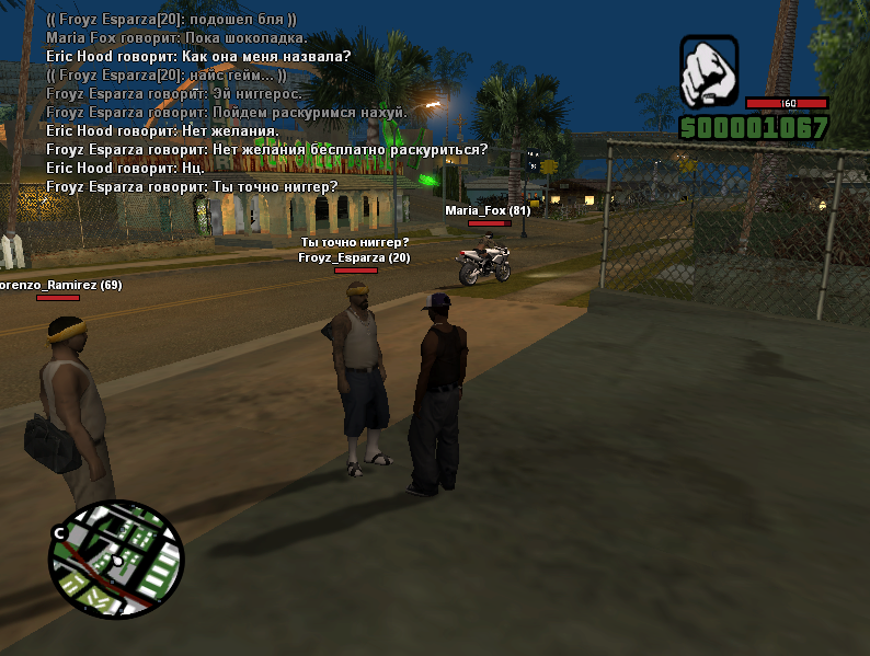 Суть жалобы: Вообщем я заехала на парковку в районе Гантон и смотрела как другие ребята отыгрывают свои роли и иногда с ними общалась. Всё было обычно до того момента как некий под именем Eric_Hood убил меня с отыгровкой "/me вытащил пистолет из нижнего белья, заканчивает жизнь Марии возле магазина одежды (Ранее пыталась сбежать от ограбления)" Во первых: Он никак не мог знать моё имя так как я была под маской. Во вторых: Я видела его ранее прошлым днём и мы даже не общались, а сейчас я процитирую что он сказал и что было дальше. Сказал он "Слезай с мотика, будем трахаться" Я отказалась и послала его и он сразу достал пистолет. Намека на ограбление небыло не единого. А сейчас я очень вас прошу заметить на моих доказательствах противоречия в его отыгровке и наказать его за ДМ.