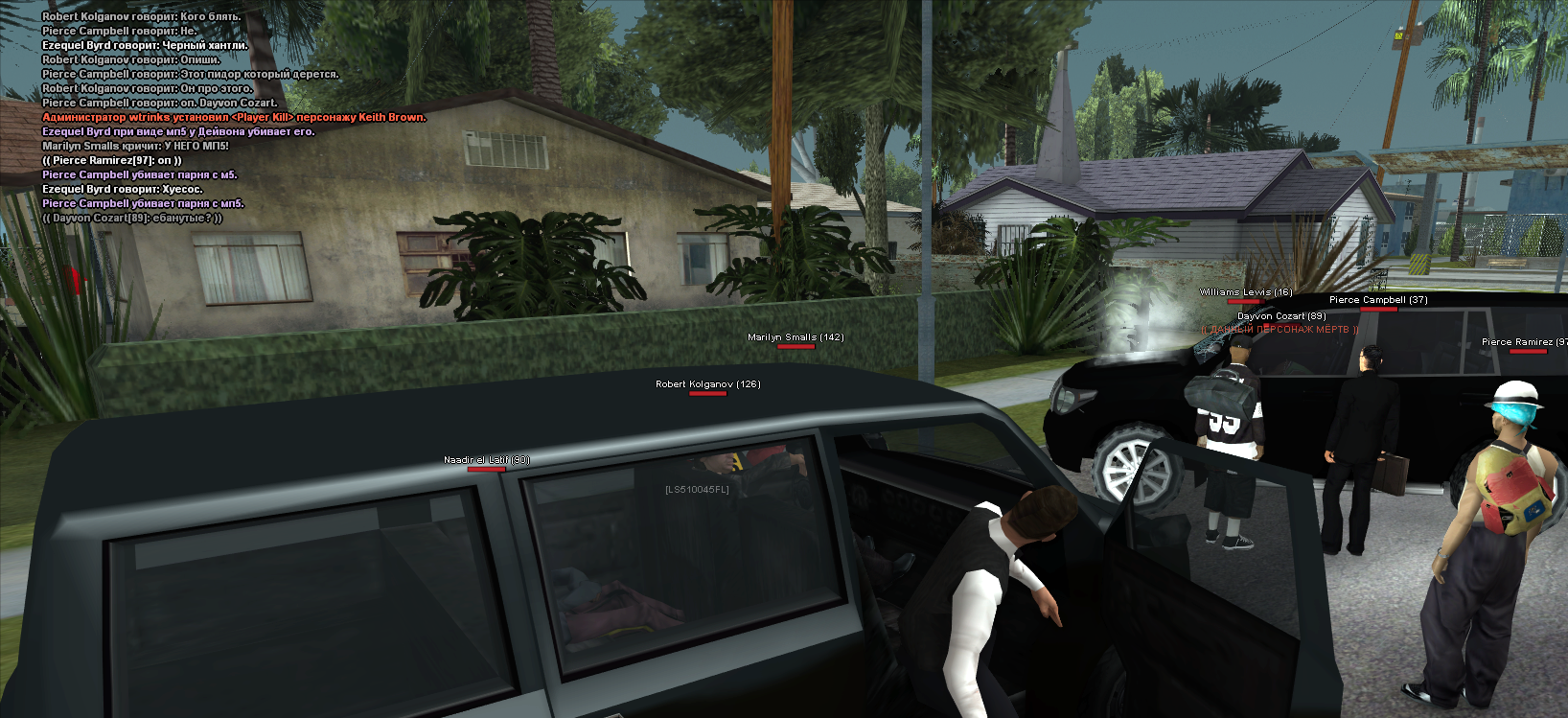 Суть жалобы: Банда нонрпешеров. Я спокойно ехал в машине, вместе с мп5 так как собирался играть с челиком ее продажу, и хотел сразу показать с рук типо. После вижу картину как стоит джип просто на проехжей части обьехать его невозможно было там еще был на моцике тип. Стою начинаю бибикать как тут вылазиют два фан геймера и расстреливают меня за то что увидил мою мп пять, цель их игры это лутерство после моего убийство они радостано кричали мп 5 мп 5 я просто в ахуе если честно как такие абсолютно нон рпшные игроки могут еще существовать на серве. Каким образом они увидили эту мп 5 с чего они решили по мне стрелять? Их действия полностью без какой либо IC Подвязки это просто натуральный бред прошу наказать их.