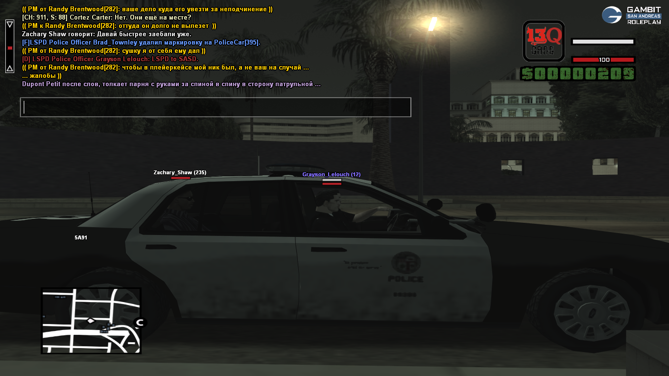 Никнейм нарушителя (если несколько, то через запятую): grayson lelouch, dupont petit, sonny bonds(swat) который выдал на улице розыск системно