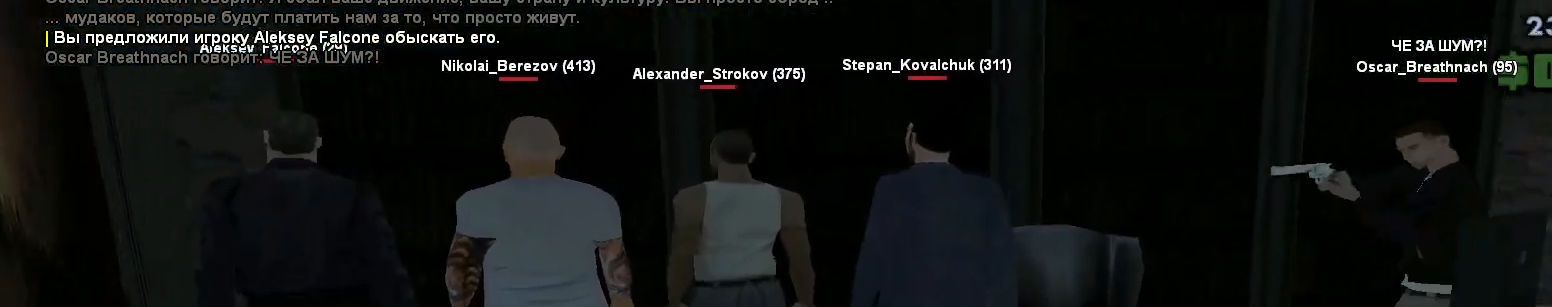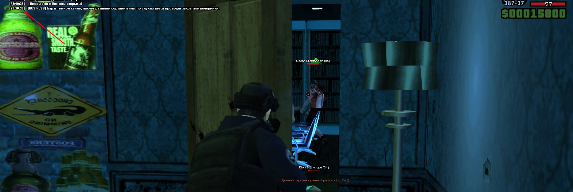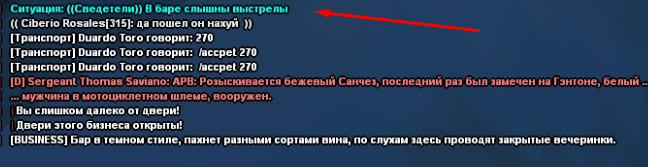 [23:09:44] {00FFFF}Ситуация: ((Сведетели)) В баре слышны выстрелы
