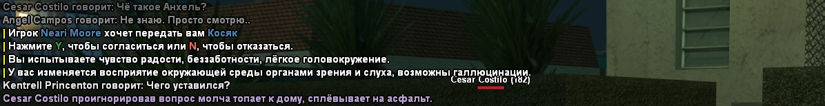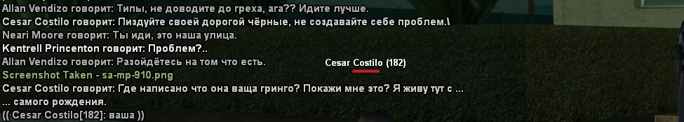 Суть жалобы: Два типа доебались до меня с другом. Изначально был доёб к корешу мол - Чё зыришь? С какой ты банды? после зашёл я, мы немного побалакали, после доёб был ко мне, из за моего испанского сленга, и по их мнению я не должен его говорить на американских землях, где все говорят без акцента. Хотя по факту, район в котором мы были ( эль корона ) он как раз испанский, даже по синглу. + они пиздели что это их район. И доказывать обратное факту, нет смысла никакого. Доказывает это то что почти вся улица в стилях мексики, и латиноамериканских банд. Чуваки тупо шутерки, по выдуманой, и высосаной из пальцы причины захуярили меня с корешем, описав в отыгровках мол : открывает огонь по латинамериканцам отстаивая интересы своей группировки. Никакой группировки мы не нашли на форуме, просто шутерки как я писал выше. Доказывает это их фг, и фразы мол : Ты зашёл за спину моему корешу, у него очко не пробиваемое. Ну это бред ебаный, я бы не лил жалобу если бы не халтурство с их стороны.