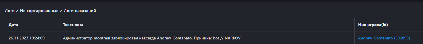 Дата и время наказания/нарушения: 26 Ноя 2023