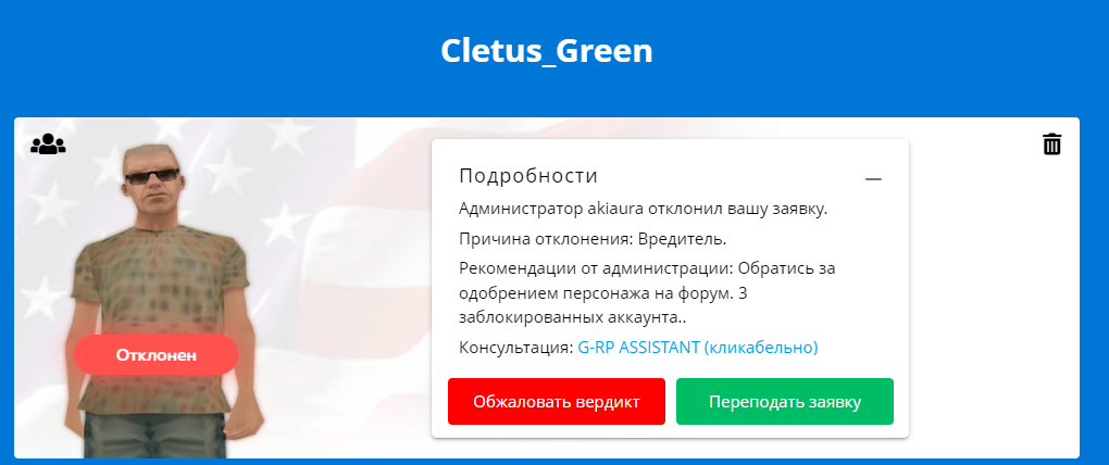 https://forum.gambit-rp.ru/threads/482273/ - вот сама биография. Попрошу одобрить мне аккаунт с ником Cletus_Green
